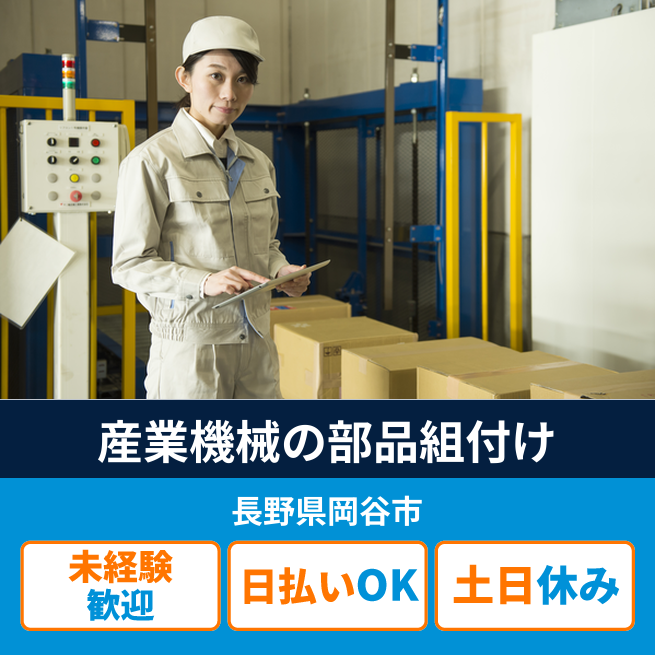 給与詳細 月収例 250,000円 日給例 10,400円 勤務地 長野県岡谷市 仕事内容 【部品の組付け】