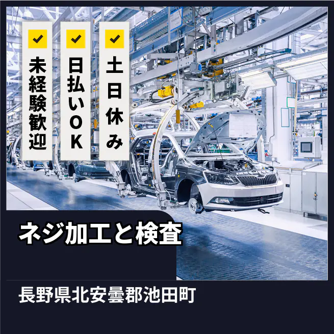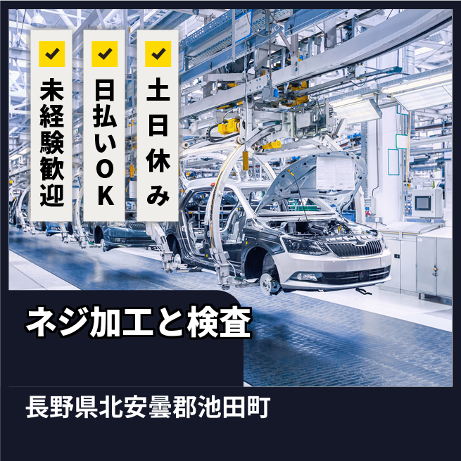 ◆日払い・仮払いOK(アプリでカンタン申請!) 交通費 支給あり 応募の流れ 本ページ内<応募する>ボタンより、必要項目をご入力の上、ご応募ください。 勤務地 【勤務地】長野県北安曇郡池田町- 勤務時間 【勤務地】8:30~17:05(休憩45分)