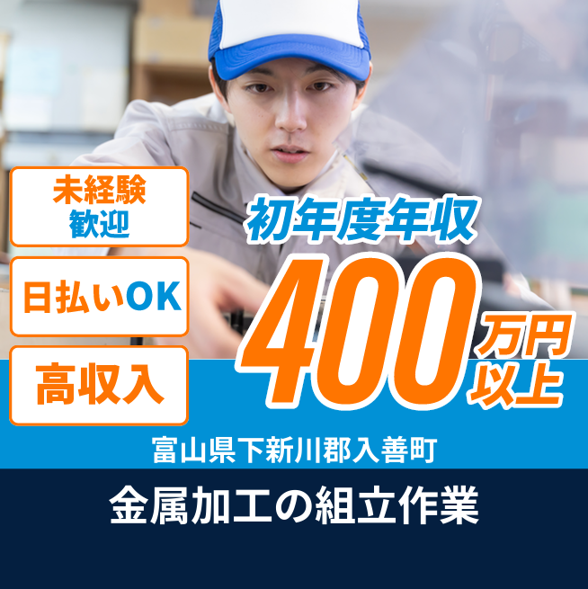 ◆日払い・仮払いOK(アプリでカンタン申請!) 交通費 支給あり 応募の流れ 本ページ内<応募する>ボタンより、必要項目をご入力の上、ご応募ください。 勤務地 【勤務地】富山県下新川郡入善町福島 勤務時間 【勤務地】8:00~16:50(休憩60分)