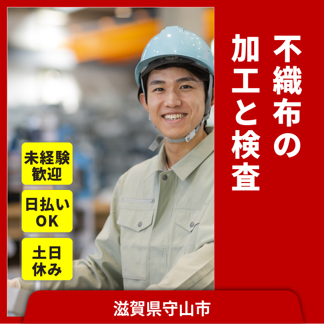 給与詳細 月収例 270,000円 日給例 12,400円 勤務地 滋賀県守山市 仕事内容 【不織布の加工・検査】