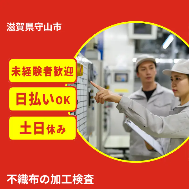 給与詳細 月収例 270,000円 日給例 12,400円 勤務地 滋賀県守山市 仕事内容 【業務内容】 不織布製品の加工と検査を担当する仕事です。