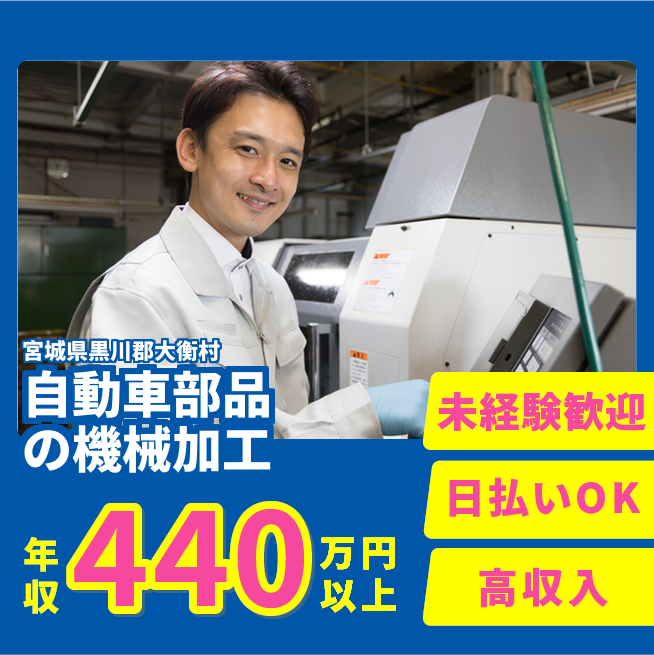 給与詳細 年収例 4,440,000円 月収例 370,000円 勤務地 宮城県黒川郡大衡村 仕事内容 【業務内容】