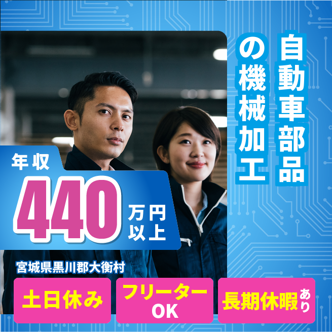 給与詳細 年収例 4,440,000円 月収例 370,000円 勤務地 宮城県黒川郡大衡村 仕事内容 【業務内容】
