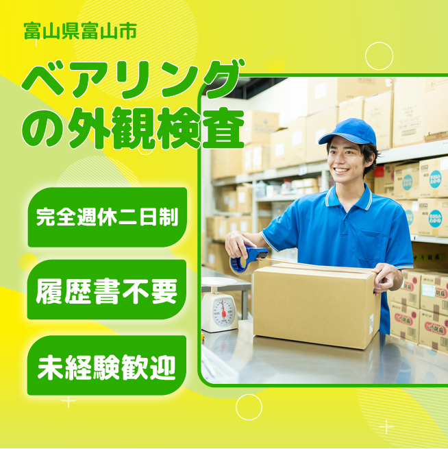 給与詳細 月収例 224,250円 日給例 11,213円 勤務地 富山県富山市 仕事内容 外観検査及び付帯作業