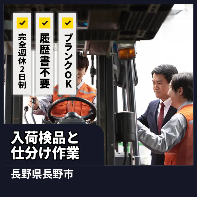 給与詳細 月収例 94,500円 時給例 1,350円 勤務地 長野県長野市 仕事内容 【業務内容】入荷商品の検品と管理業務