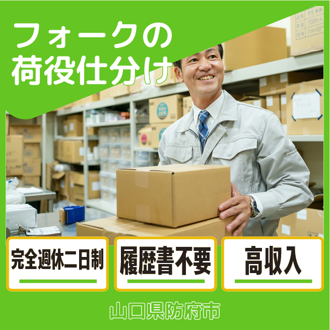 給与詳細 年収例 4,260,000円 月収例 355,000円 勤務地 山口県防府市 仕事内容 大手自動車会社の物流関連のグループ会社でのお仕事です。フォークリフト荷役作業/検収作業/製品仕分け/空容器整理作業をお任せします!