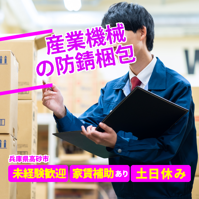 主に海外向けの産業用機械製品や船用部品の防錆梱包作業を担当いただきます。