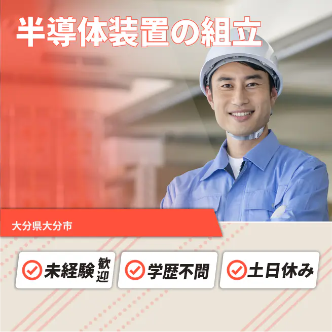 給与詳細 月収例 221,457円 時給例 1,187円 勤務地 大分県大分市 仕事内容 半導体装置のパーツの組立作業、装置の配線処理、組付け後の機能検査のお仕事を行って頂きます。