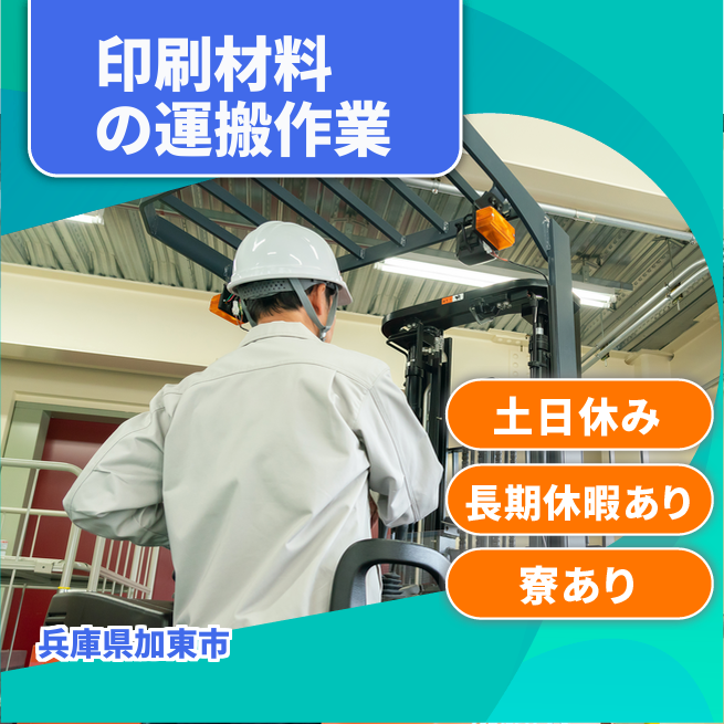 給与詳細 月収例 249,605円 日給例 11,250円 勤務地 兵庫県加東市 仕事内容 印刷で使用する原材料や大きなロール状の材料をカウンターリフトを使用して降ろして現場へ移動。