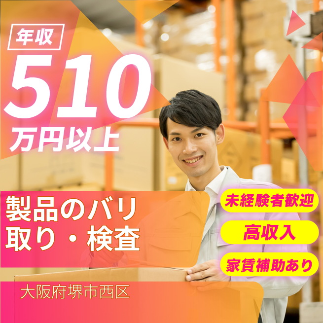 給与詳細 年収例 4,581,324円 月収例 381,777円 勤務地 大阪府堺市西区 仕事内容 部品をセット、製品の余分なバリ取り、機械の操作(スタート・ストップ)、検査作業等。