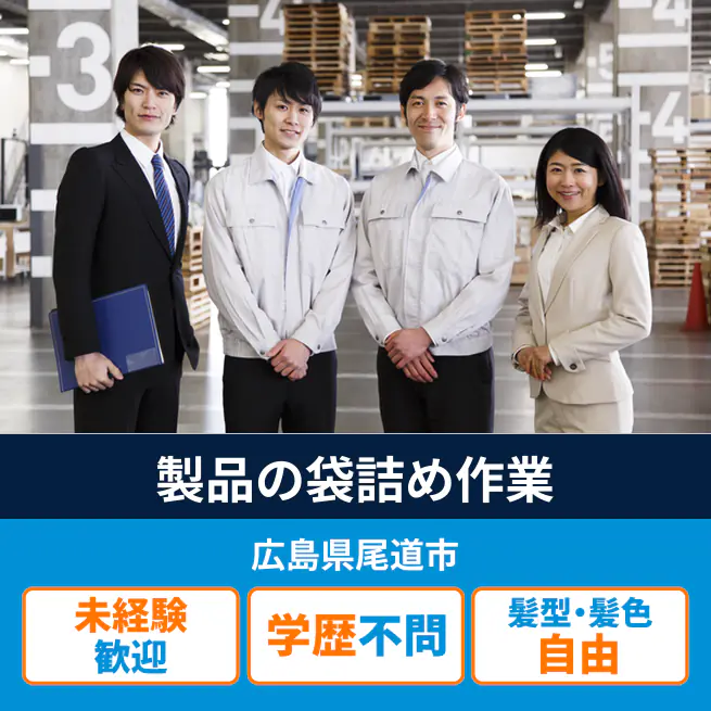 就業場所:無/就業範囲:無 【◆機械に袋をセットして製品を袋に流し込んでいく◆袋に製品が入ったら封をしてコンベアに流す◆コンベアから製品の入った袋を取り、段ボールに詰めて再度コンベアに流す