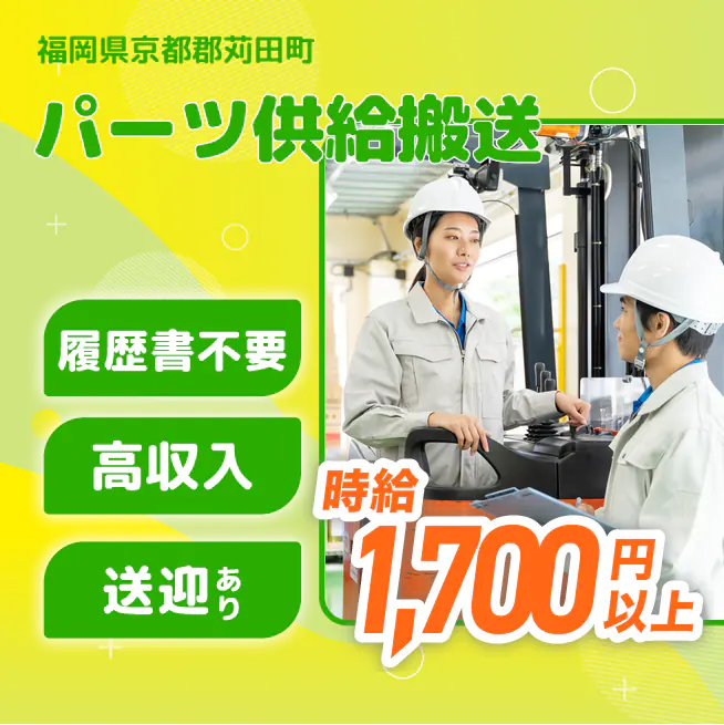 フォークリフト運転技能講習修了者向けのパーツ移動・台車供給業務です。