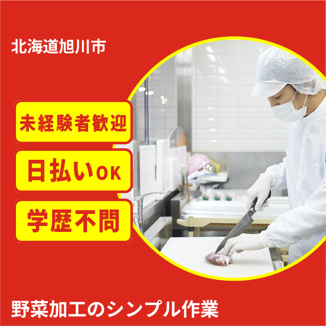※実際と異なるケースもございます。 交通費 支給あり 応募の流れ 本ページ内<応募する>ボタンより、必要項目をご入力の上、ご応募ください。 勤務地 【勤務地】北海道旭川市近文町20丁目 勤務時間 【勤務地】06:00~12:00 休憩なし