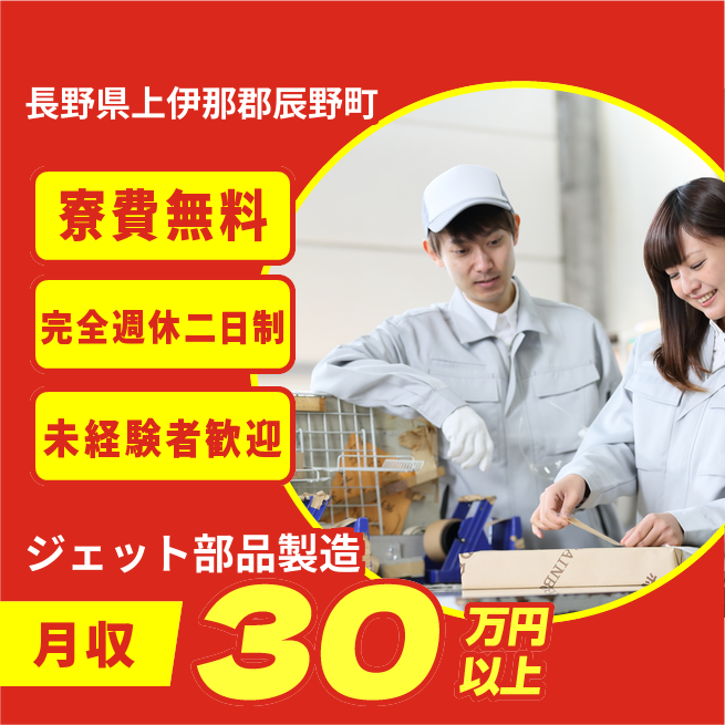 ※実際と異なるケースもございます。 交通費 支給あり 応募の流れ 本ページ内<応募する>ボタンより、必要項目をご入力の上、ご応募ください。 勤務地 【勤務地】長野県上伊那郡辰野町伊那富 勤務時間 【勤務地】①20:00~05:00 休憩60分