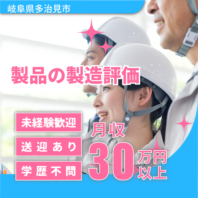 給与詳細 月収例 330,750円 日給例 12,000円 勤務地 岐阜県多治見市 仕事内容 工程によって様々な作業がある