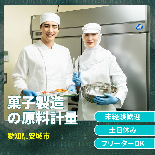 - 菓子製造用の原料を計量し、適切に投入する作業