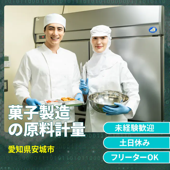 大手菓子メーカーでの菓子製造に関わる原料の計量や機械操作を担当します。