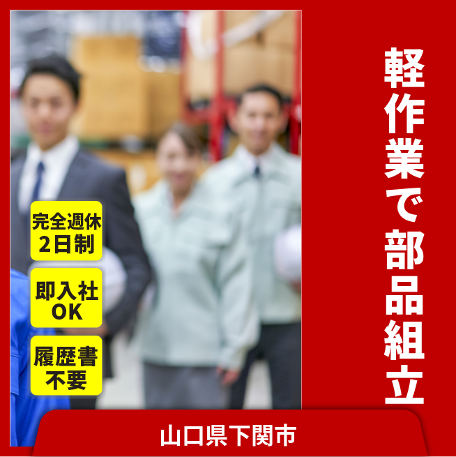 給与詳細 月収例 174,400円 時給例 1,090円 勤務地 山口県下関市 仕事内容 【業務内容】