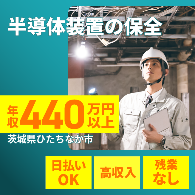 給与詳細 年収例 4,440,000円 月収例 370,000円 勤務地 茨城県ひたちなか市 仕事内容 【半導体製造装置の保全】