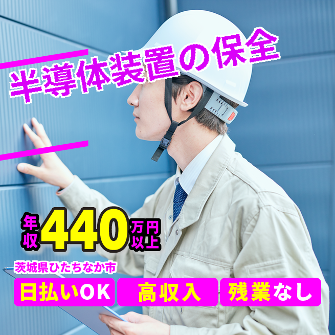 給与詳細 年収例 4,440,000円 月収例 370,000円 勤務地 茨城県ひたちなか市 仕事内容 【業務内容】半導体製造装置の保全業務
