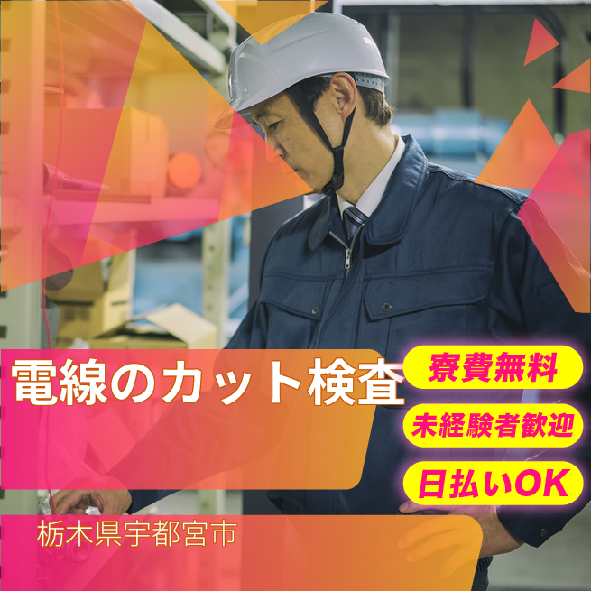 給与詳細 月収例 280,000円 日給例 11,280円 勤務地 栃木県宇都宮市 仕事内容 【電線のカット・検査】