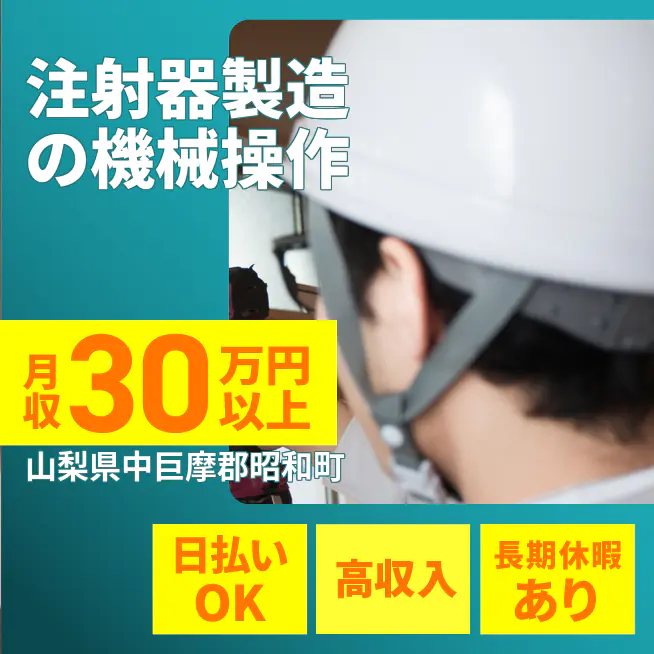 ・受動喫煙対策あり、詳細は面接時にお伝えします。 公開日 2025年10月01日 【注射器製造の機械オペレーター】