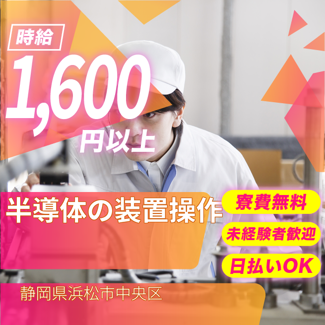 給与詳細 月収例 275,000円 時給例 1,719円 勤務地 静岡県浜松市中央区 仕事内容 【機械のボタンを押して操作(半導体の製造)】