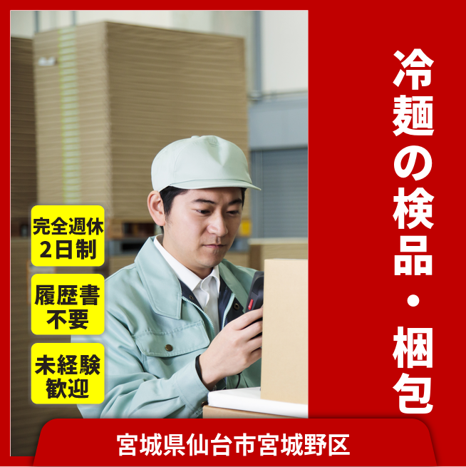 給与詳細 例 0円 時給例 1,140円 勤務地 宮城県仙台市宮城野区 仕事内容 冷麺の検品・梱包・出荷準備作業。