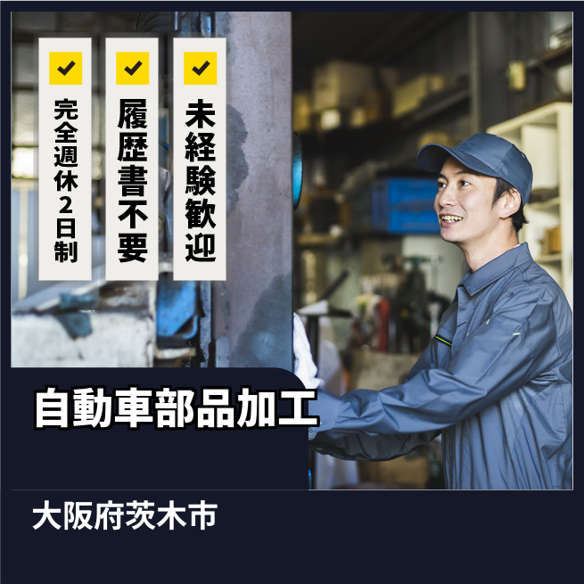 給与詳細 月収例 276,900円 日給例 11,360円 勤務地 大阪府茨木市 仕事内容 製品を機械にセットしてプレスや溶接をする機械オペレーター、検査・バリ取り・部品の運搬等
