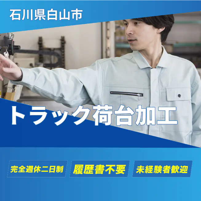 給与詳細 月収例 253,000円 日給例 12,650円 勤務地 石川県白山市 仕事内容 【業務内容】