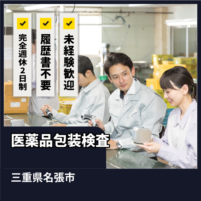 給与詳細 月収例 239,850円 時給例 1,230円 勤務地 三重県名張市 仕事内容 【業務内容】化粧品や医薬品のパッケージ検査を担当する仕事です。