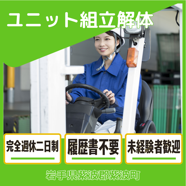 給与詳細 月収例 187,500円 時給例 1,300円 勤務地 岩手県紫波郡紫波町 仕事内容 ユニットハウスの組立・解体作業を中心に、使用後の洗浄や部材の仕分け、入出荷に関わる補助業務などを担当していただきます。屋外での作業もあり、体を動かすことが好きな方におすすめの職場です。