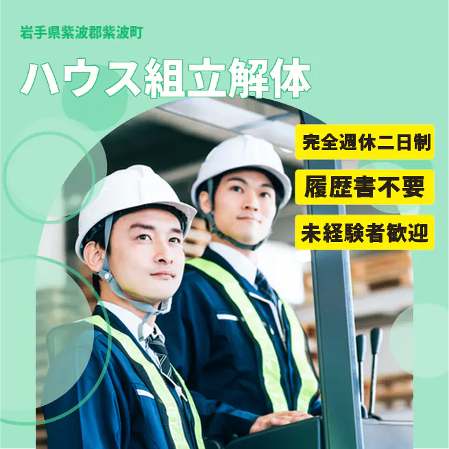 給与詳細 月収例 187,500円 時給例 1,300円 勤務地 岩手県紫波郡紫波町 仕事内容 【業務内容】ユニットハウスの組立・解体と関連作業を担当