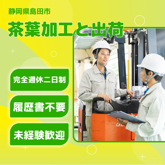 茶葉のブレンドから加工、包装、出荷まで、製品が完成するまでの一連の作業を担当していただきます。最初は機械操作や梱包作業からスタートし、先輩が丁寧にサポートしますので、経験がなくても安心です。完成した製品はリーチ式フォークリフトで運搬し、出荷まで行います。作業の8~9割がフォークリフト作業ですが、資格がなくても入社後に取得できる制度がある職場もあります。