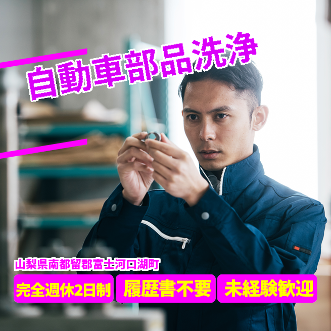給与詳細 月収例 263,250円 日給例 10,800円 勤務地 山梨県南都留郡富士河口湖町 仕事内容 自動車金属部品製品の洗浄工程における設備オペレーター及び洗浄作業、測定、検査業務。食堂完備、残業アリ。稼げるお仕事です。