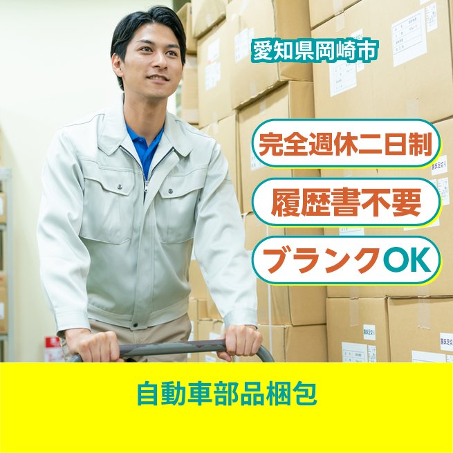 安心の週休2日【自動車部品梱包】