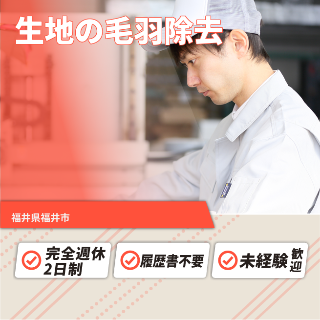 給与詳細 月収例 272,000円 日給例 13,600円 勤務地 福井県福井市 仕事内容 生地加工・仕上げ工程