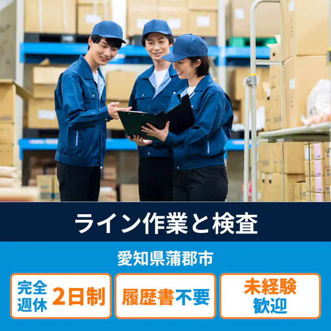 給与詳細 月収例 302,250円 日給例 12,400円 勤務地 愛知県蒲郡市 仕事内容 【業務内容】