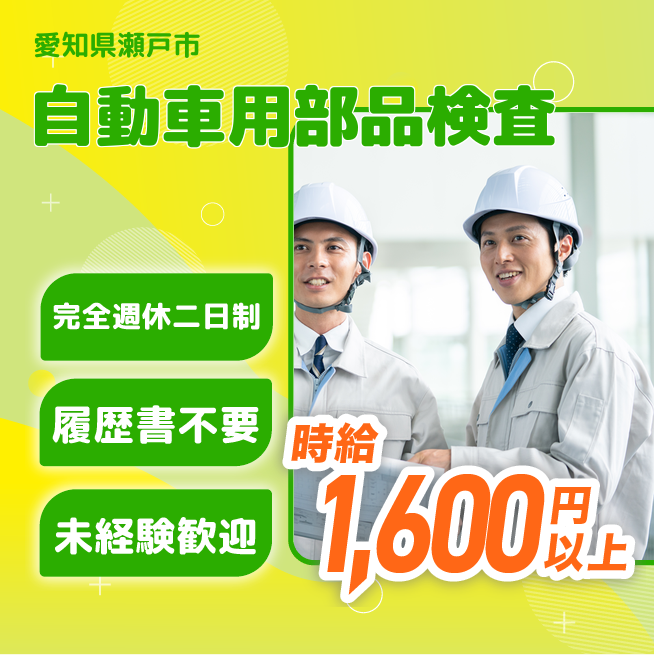 給与詳細 月収例 303,000円 時給例 1,700円 勤務地 愛知県瀬戸市 仕事内容 プラスチック製品の塗装工程での検査業務。