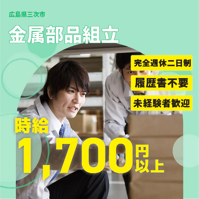 安心の週休2日【金属部品組立】