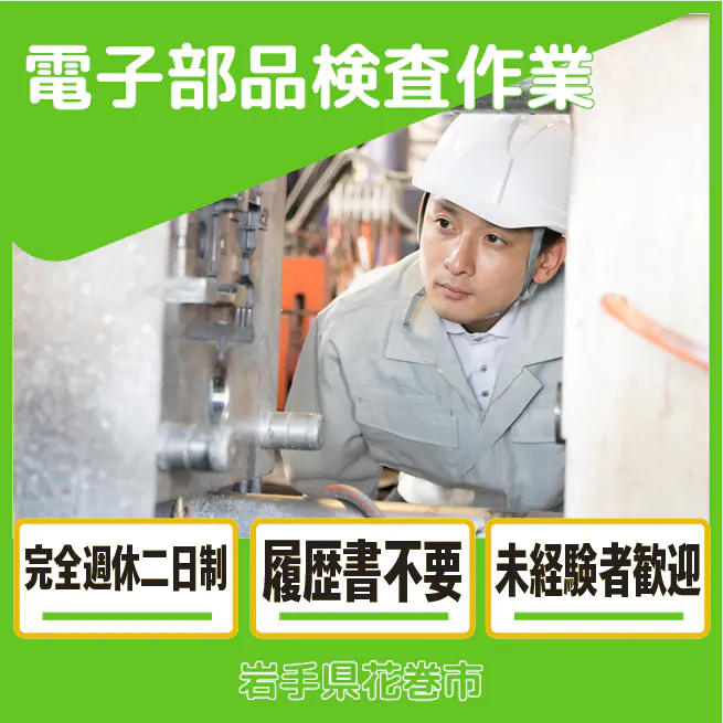 給与詳細 月収例 220,000円 日給例 11,000円 勤務地 岩手県花巻市 仕事内容 電子機器などに使用される電子部品のマシンオペレーター・目視検査業務。