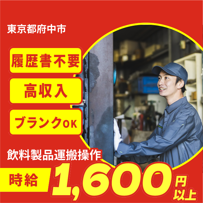 給与詳細 月収例 312,000円 時給例 1,600円 勤務地 東京都府中市 仕事内容 【業務内容】飲料製品を扱う工場での物流機械オペレーション