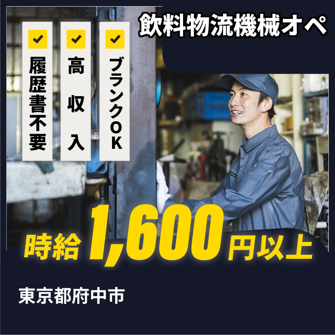 給与詳細 月収例 312,000円 時給例 1,600円 勤務地 東京都府中市 仕事内容 【業務内容】飲料製品の物流機械オペレーター