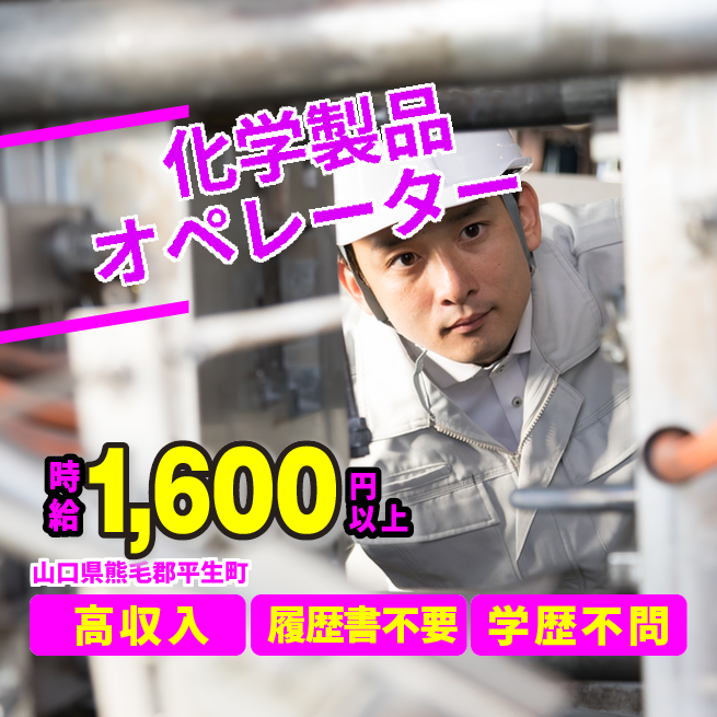給与詳細 月収例 250,000円 日給例 12,500円 勤務地 山口県熊毛郡平生町 仕事内容 化学製品の製造プラント内でのオペレーター業務