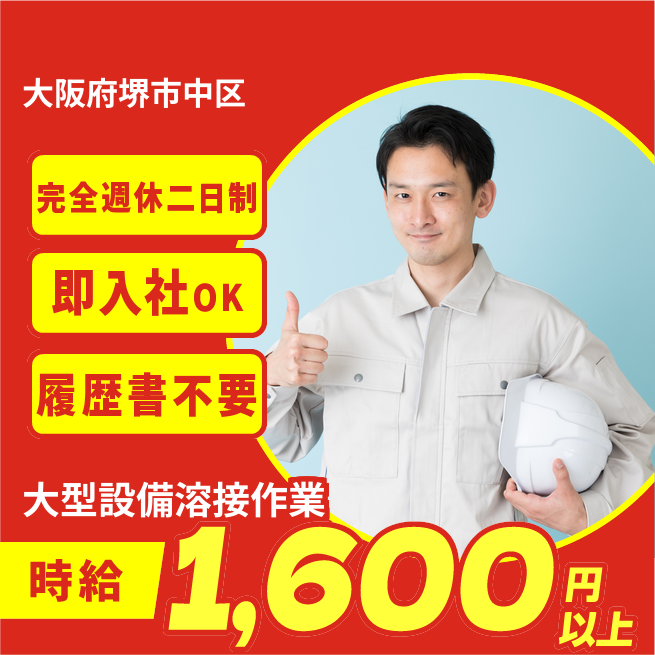 週休2日で安心【大型設備溶接作業】