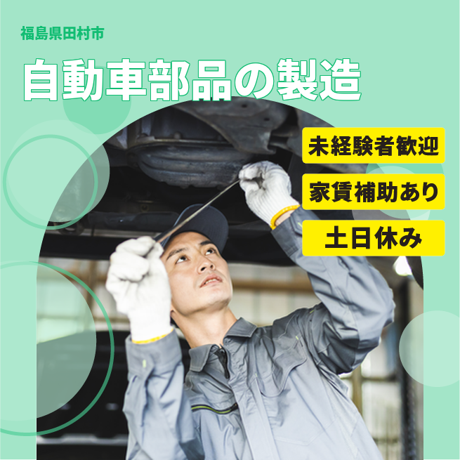 給与詳細 月収例 225,000円 日給例 11,250円 勤務地 福島県田村市 仕事内容 ウィルオブ・ワークの正社員として自動車用部品メーカーの取引先で勤務いただきます。