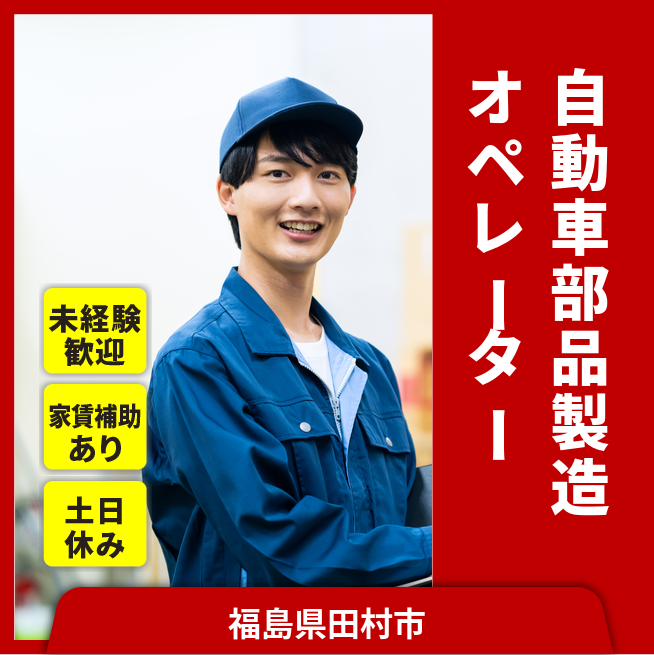 27.1万円 交通費 支給あり 応募の流れ 本ページ内<応募する>ボタンより、必要項目をご入力の上、ご応募ください。 勤務地 【勤務地】福島県田村市- 勤務時間 【勤務地】2交替※配属後初めは日勤での勤務となります(生産状況によって8:15-17:10)