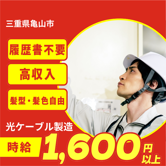 給与詳細 年収例 4,258,140円 月収例 354,845円 勤務地 三重県亀山市 仕事内容 【業務内容】光ケーブルの製造プロセスを担当します。
