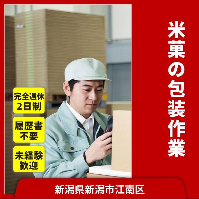 給与詳細 月収例 214,500円 時給例 1,100円 勤務地 新潟県新潟市江南区 仕事内容 ・包装前の製品を機械に投入