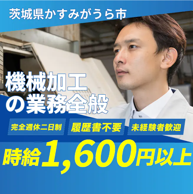 給与詳細 月収例 300,000円 時給例 1,600円 勤務地 茨城県かすみがうら市 仕事内容 【業務内容】建設機械用金属部品の機械加工